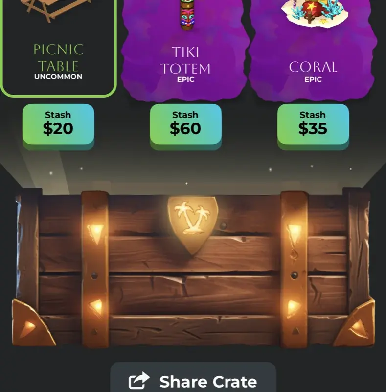 Every crate reveals different decorations, but it's only available to stash today. Don't wait to stash, because tomorrow brings a new selection.